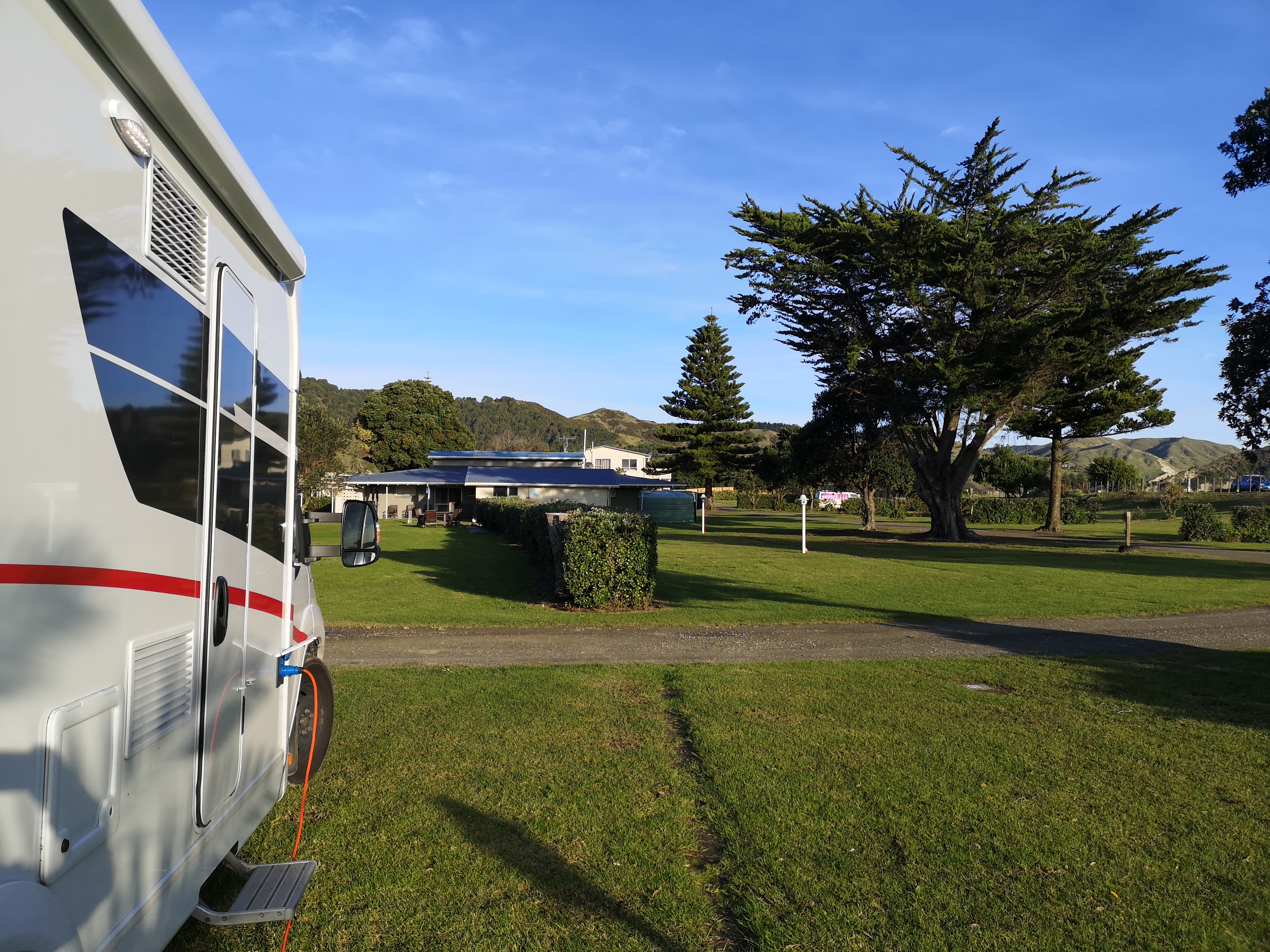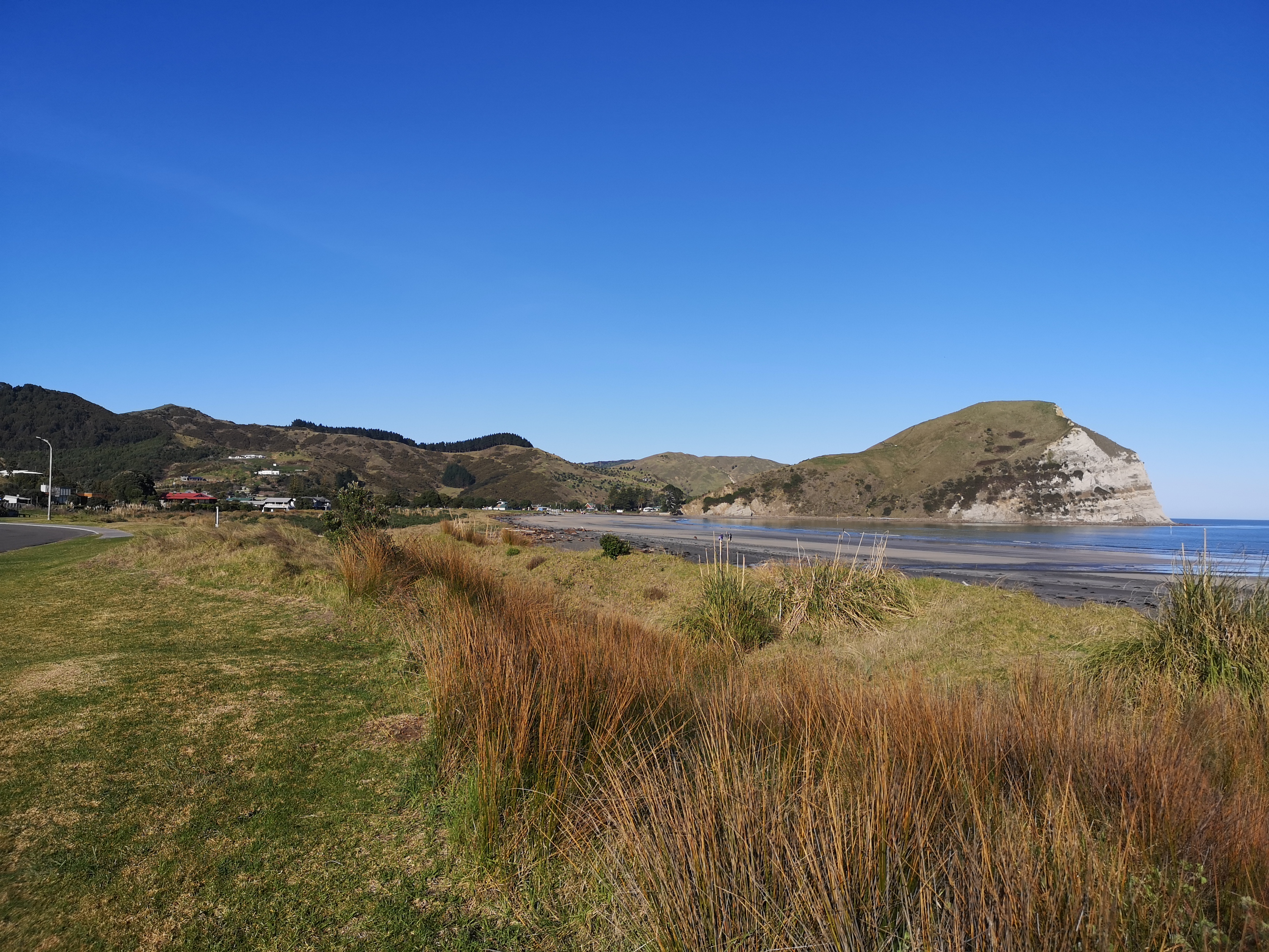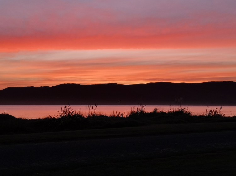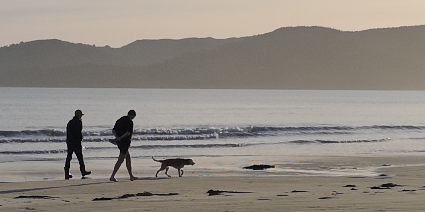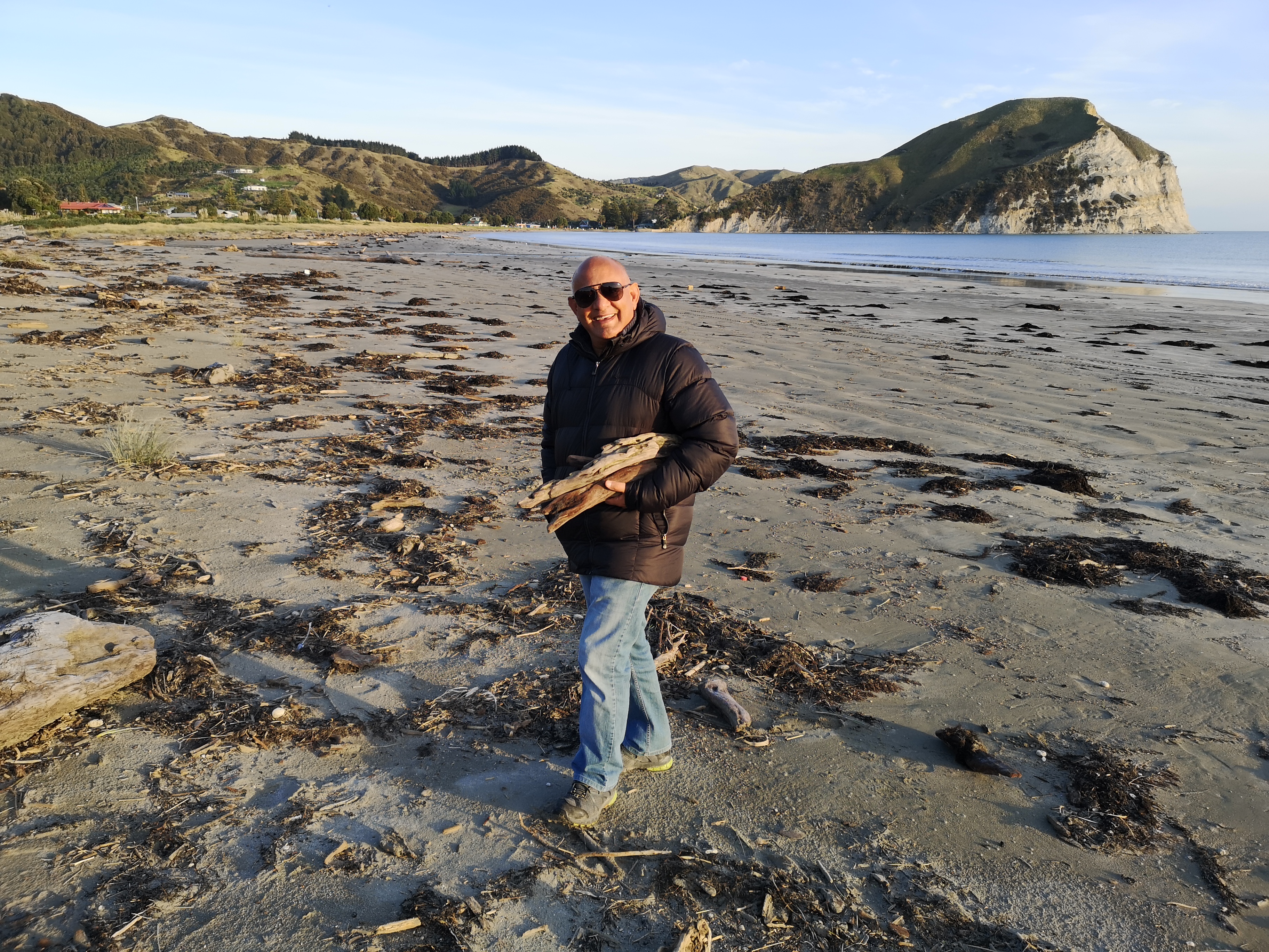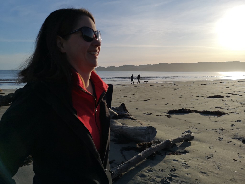 it’s now 4.30, the sun is going down and the temp dropping along with it so we ventured out for our last beach walk from Mahia Peninsula Holiday Park before hunklering down for the evening.